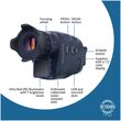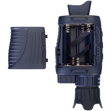 Η τροφοδοσία της συσκευής με ενέργεια γίνεται με 5 ΑΑ αλκαλικές μπαταρίες οι οποίες μπορούν να καλύψουν έως 10 ώρες συνεχόμενης χρήσης σε απλή λειτουργία χωρίς τον υπέρυθρο φωτισμό. Κατασκευασμένο με εργονομικό σχεδιασμό για να σας προσφέρει άνετο κράτημα και εύκολο χειρισμό ενώ με το σπείρωμα ¼" έχετε την δυνατότητα να την προσαρτήσετε σε τρίποδα για πιο άνετη παρατήρηση.