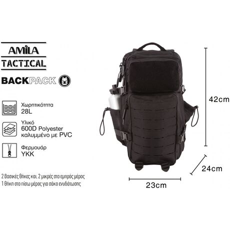 Σακίδιο Πλάτης Tactical Small 28L Amila Κωδ. 95348 Μαύρο