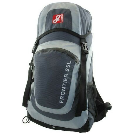 Το backpack FRONTIER 25L της Grasshoppers έχει σχεδιαστεί με γνώμονα την άνεση, την πρακτικότητα και την ασφάλεια! Τα σημεία που έρχονται σε επαφή με την πλάτη είναι από ποιοτικό διαπνέων mesh υλικό, διαθέτει ενσωματωμένο αδιάβροχο ύφασμα στη βάση του και επενδυμένο ιμάντα θώρακα για σταθερότητα στην εφαρμογή του! Ιδιαίτερα χρηστικό, διαθέτει πολλές θήκες για την πρακτική ταξινόμηση απαραίτητων αντικειμένων: εξωτερική τσέπη στο καπάκι, μπροστινή εξωτερική τσέπη με αδιαβροχοποιημένο φερμουάρ, δύο πλαϊνές θήκες mesh και ειδική εσωτερική θήκη για την τοποθέτηση σάκου νερού με έξοδο για το σωληνάκι! Διαθέτει ελαστικά κορδόνια για πιολέ και κλιπ με σφυρίχτρα, τα βασικά εργαλεία σε περιπτώσεις έκτακτης ανάγκης! Ποιότητα και εργονομία σε ένα σακίδιο πλάτης 25 λίτρων, κατάλληλο για trekking και εξορμήσεις στη φύση, όπου οι απαιτήσεις σε εξοπλισμό δεν είναι μεγάλες!